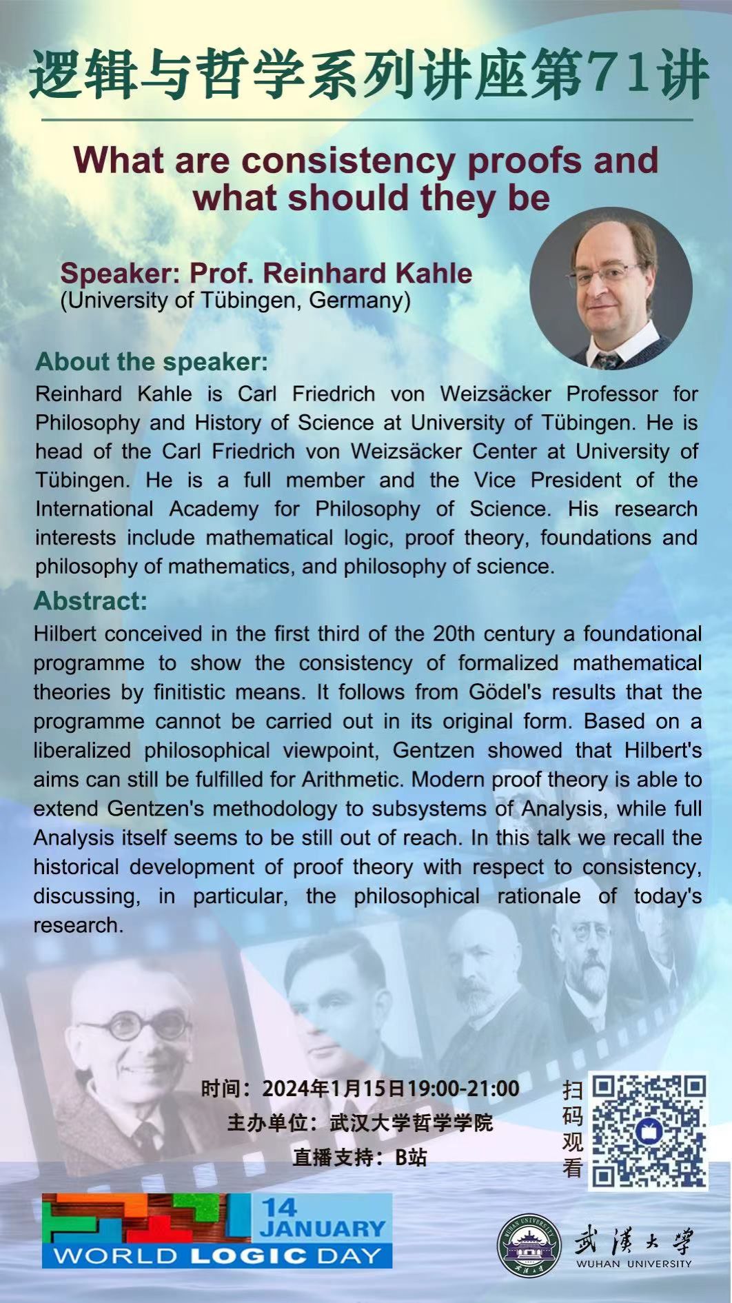 【1月15日】What are consistency proofs and what should they be ——逻辑与哲学系列讲座第71讲