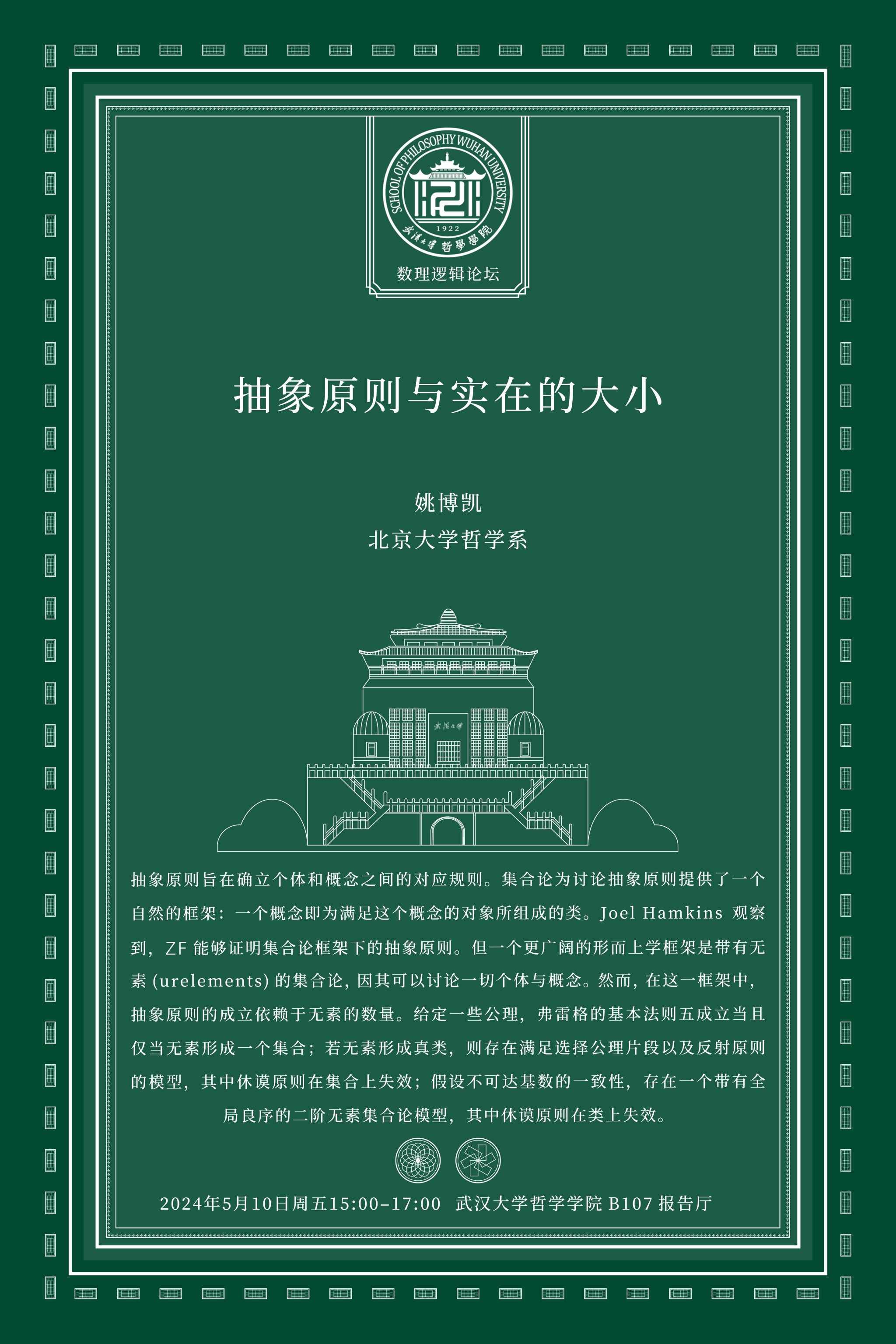 主讲人简介:姚博凯,北京大学哲学系助理教授。主要研究领域为集合论、数学哲学和形而上学。在集合论方面,主要研究带有无素(urelements)的集合论,包括无素集合论的公理化,力迫法,选择公理以及反射原则。在数学哲学方面,目前关注集合论公理的哲学基础,潜无穷主义和抽象原则。在形而上学方面,感兴趣分体论与集合论之间的关系。
