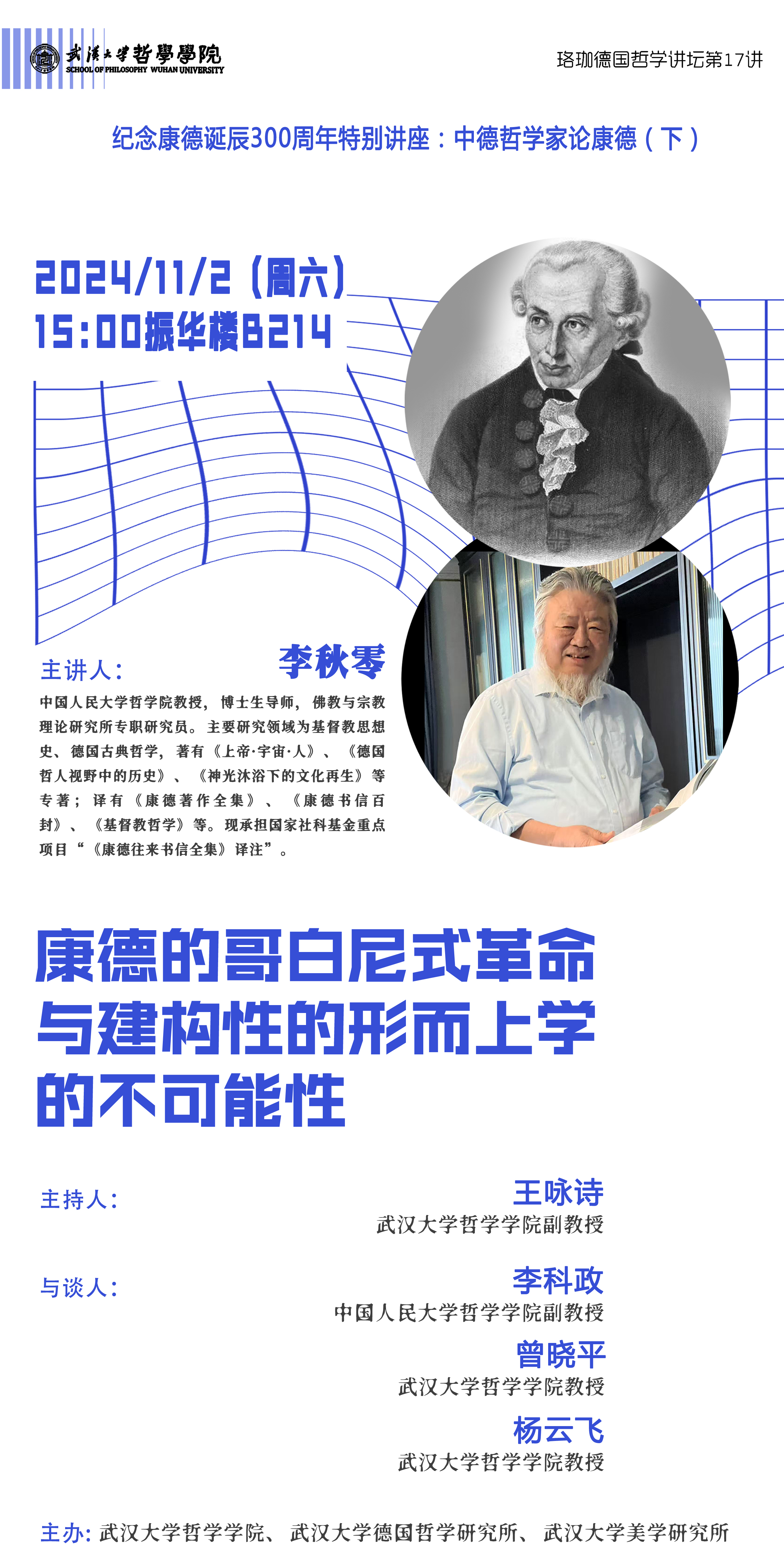 【11月2日】珞珈德国哲学讲坛第17讲|康德的哥白尼式革命与建构性的形而上学的不可能性——纪念康德诞辰300周年特别讲座:中德哲学家论康德(下)