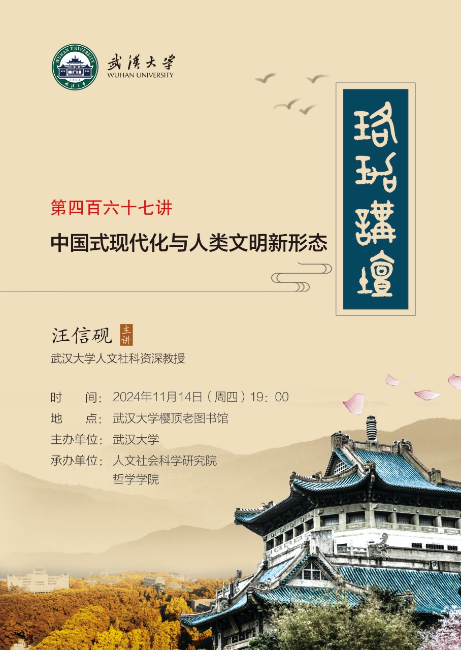 【11月14日】珞珈讲坛第467讲|汪信砚:中国式现代化与人类文明新形态