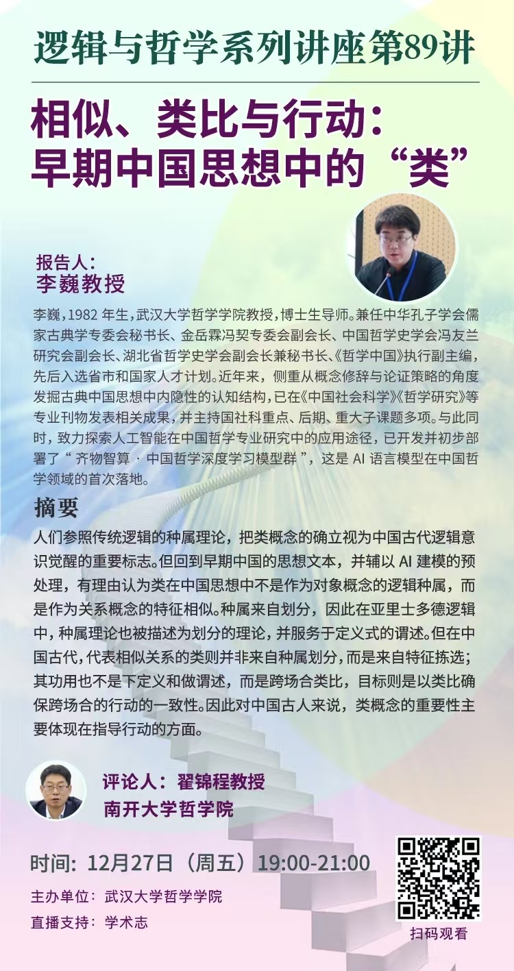 【12月27日】逻辑与哲学系列讲座第89讲|李巍:相似、类比与行动:早期中国思想中的“类”