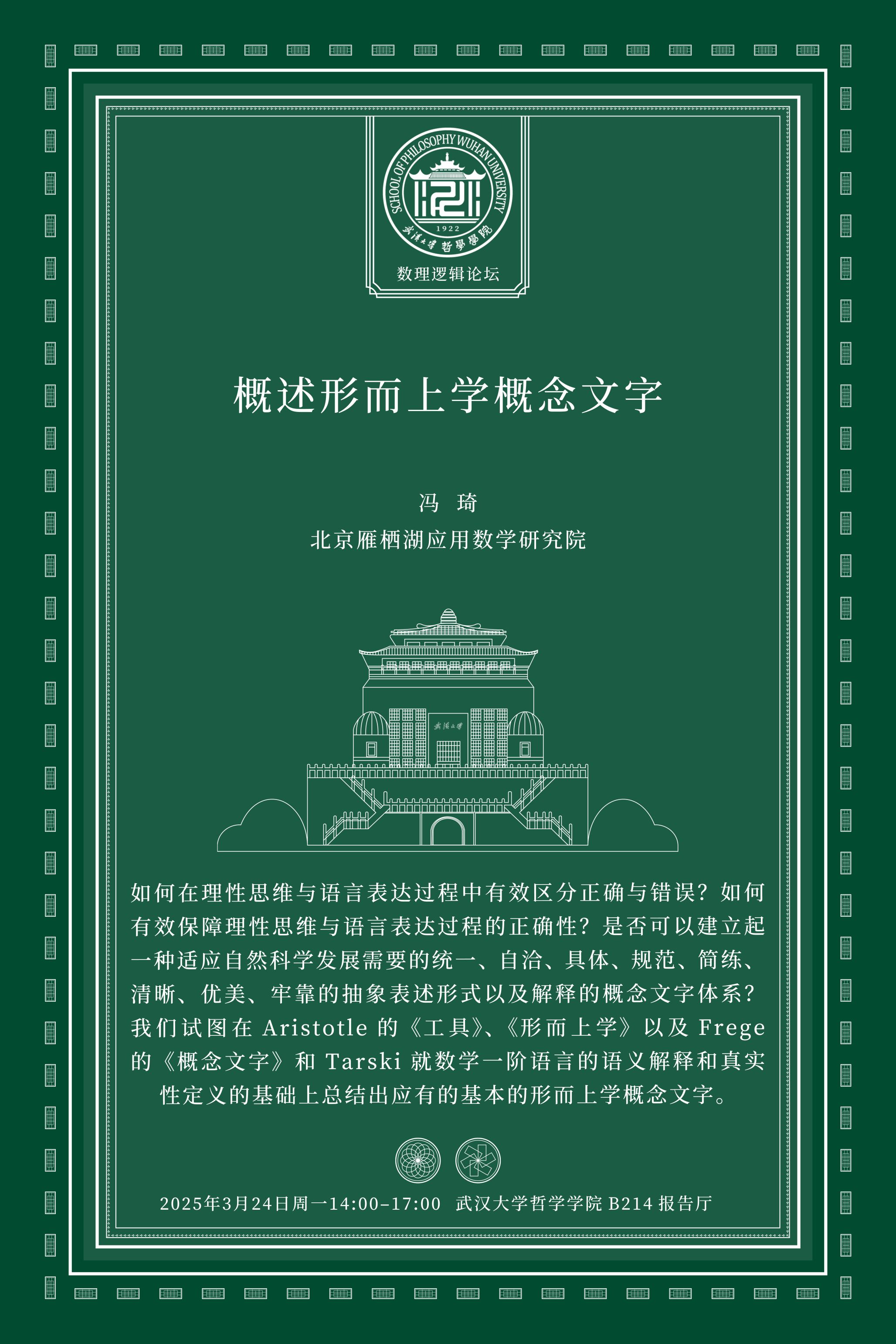 【3月24日】数理逻辑论坛 | 冯琦: 概述形而上学概念文字