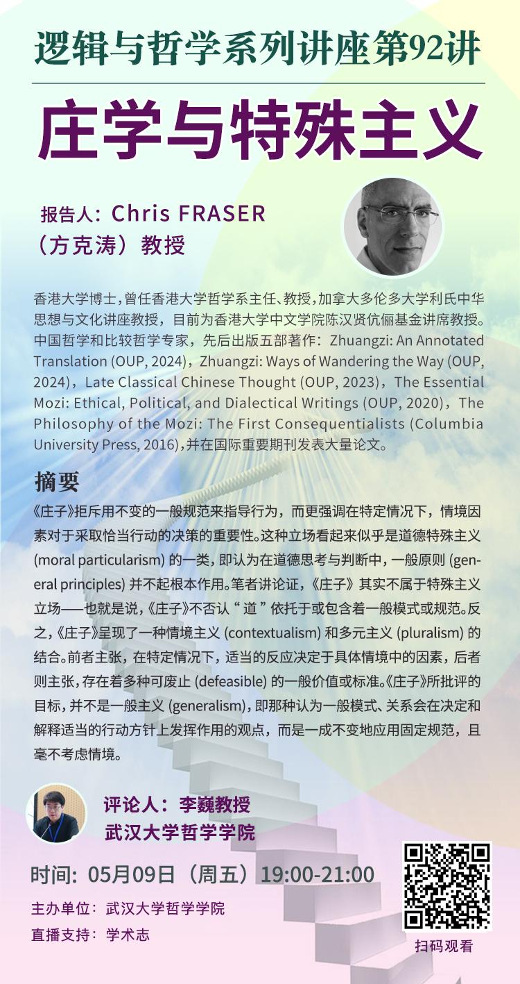 【5月9日】逻辑与哲学系列讲座第92讲| Chris FRASER : 庄学与特殊主义