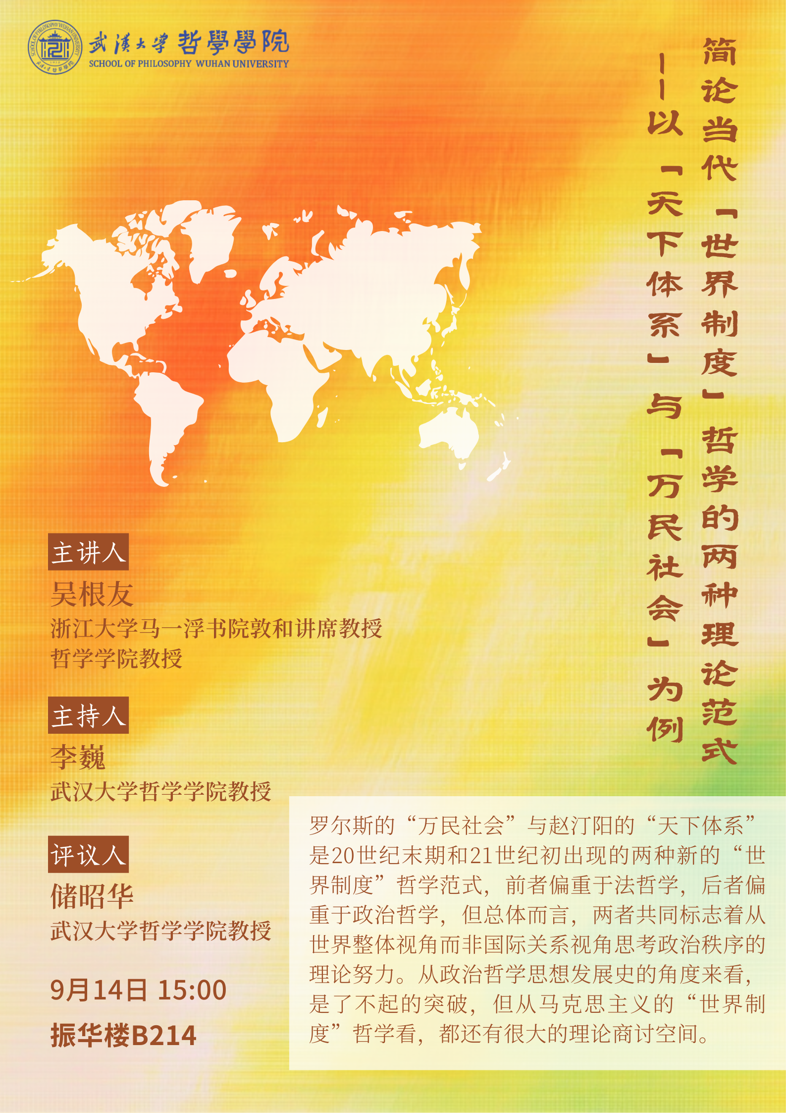 【9月14日】简论当代“世界制度”哲学的两种理论范式——以“天下体系”与“万民社会”为例