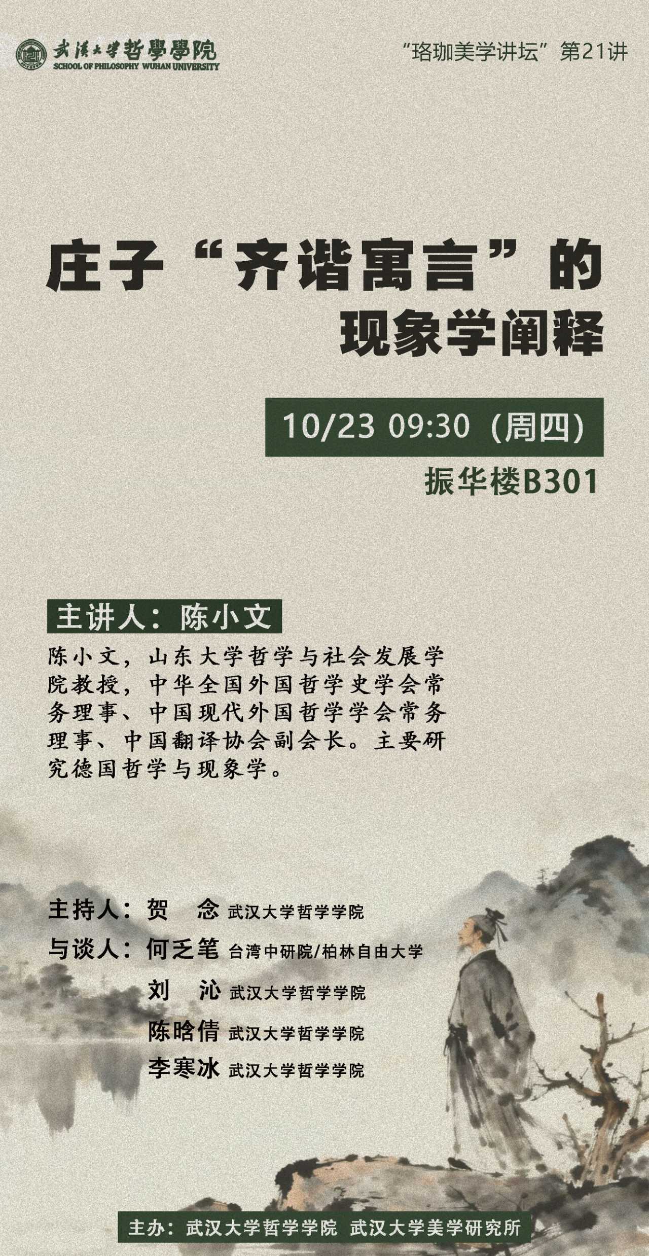 【10月23日】珞珈美学讲坛第21讲 | 陈小文:庄子“齐谐寓言”的现象学阐释