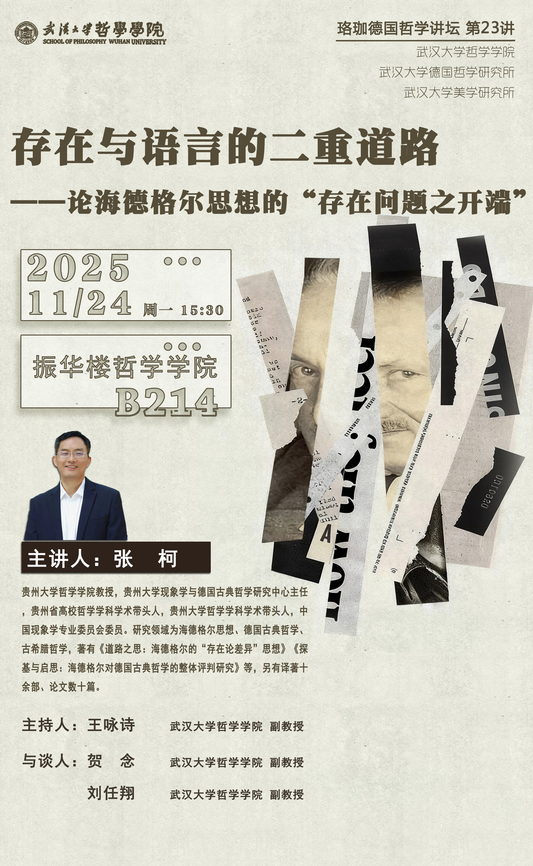 【11月24日】珞珈德国哲学讲坛第23讲 | 张柯:存在与语言的二重道路——论海德格尔思想的“存在问题之开端”