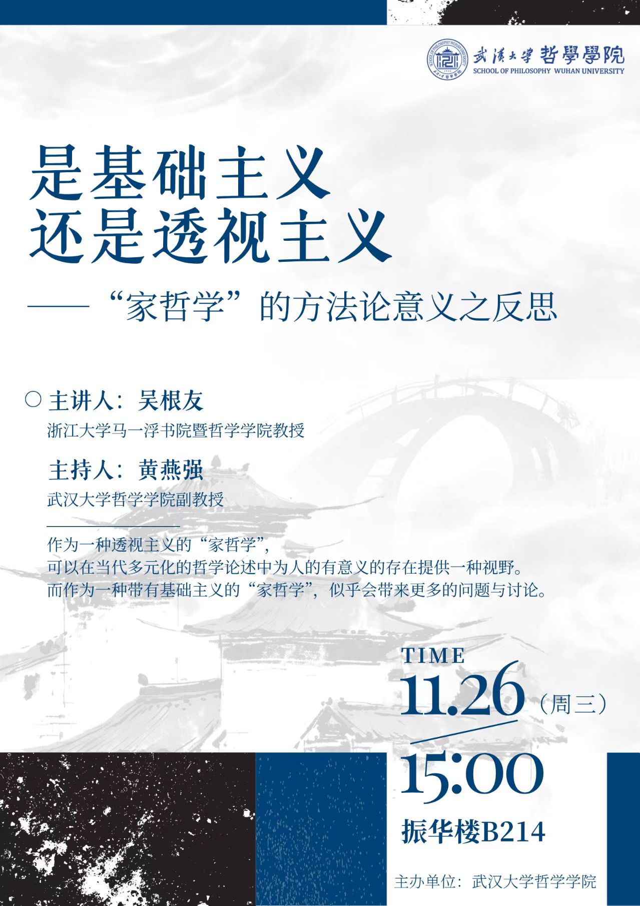 【11月26日】吴根友:是基础主义还是透视主义——“家哲学”的方法论意义之反思