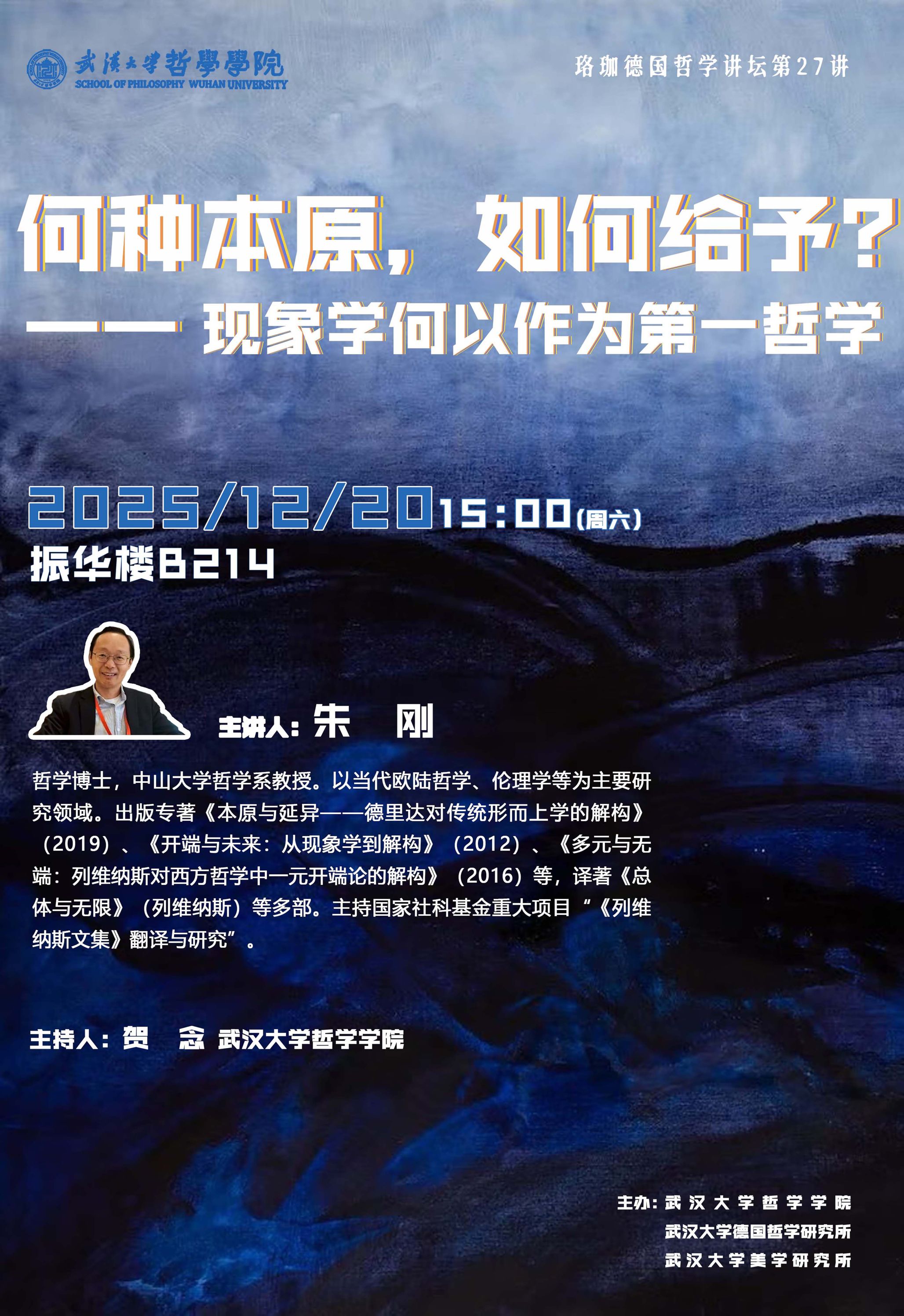 【12月20日】“珞珈德国哲学讲坛”第27讲 ▕ 朱刚:何种本原,如何给予?——现象学何以作为第一哲学