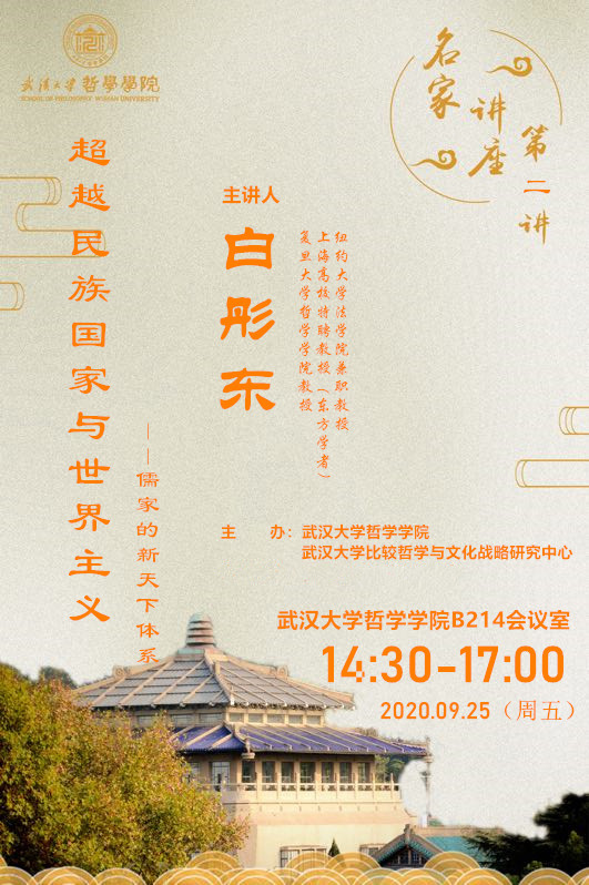 【9月25日】名家讲座第二讲:超越民族国家与世界主义——儒家的新天下体系