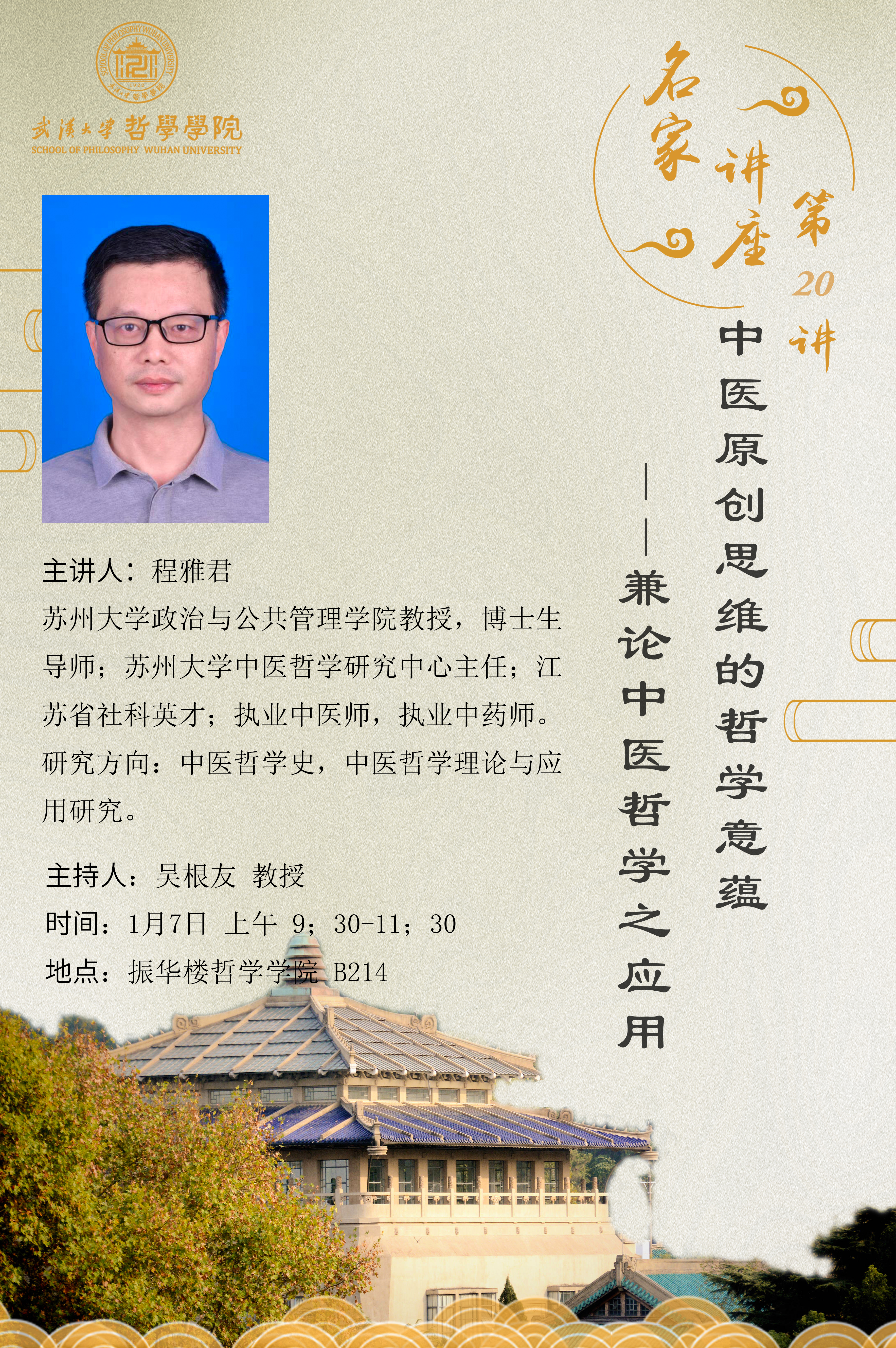 【1月7日】名家讲座第20讲:中医原创思维的哲学意蕴——兼论中医哲学之应用