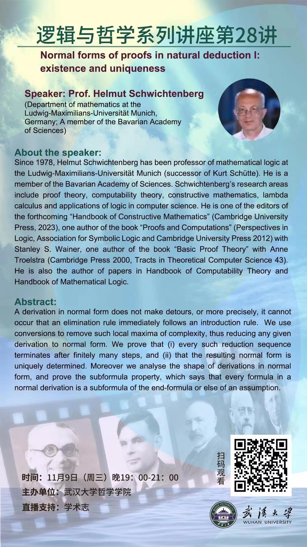 【11月9日】Normal forms of proofs in natural deduction I: existence and uniqueness——逻辑与哲学系列讲座第28讲