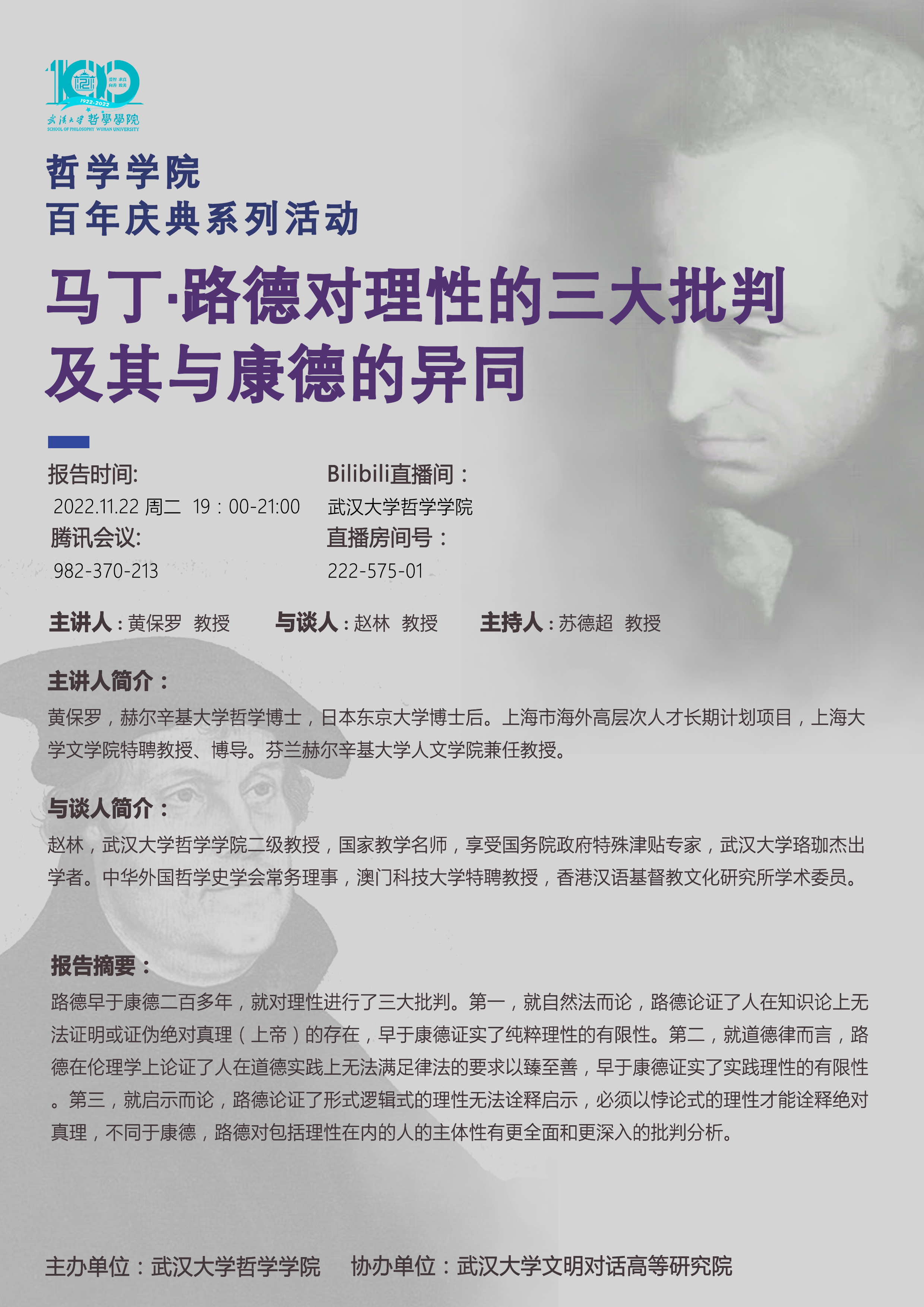 【11月22日】马丁·路德对理性的三大批判及其与康德的异同——轻小说 百年庆典系列活动