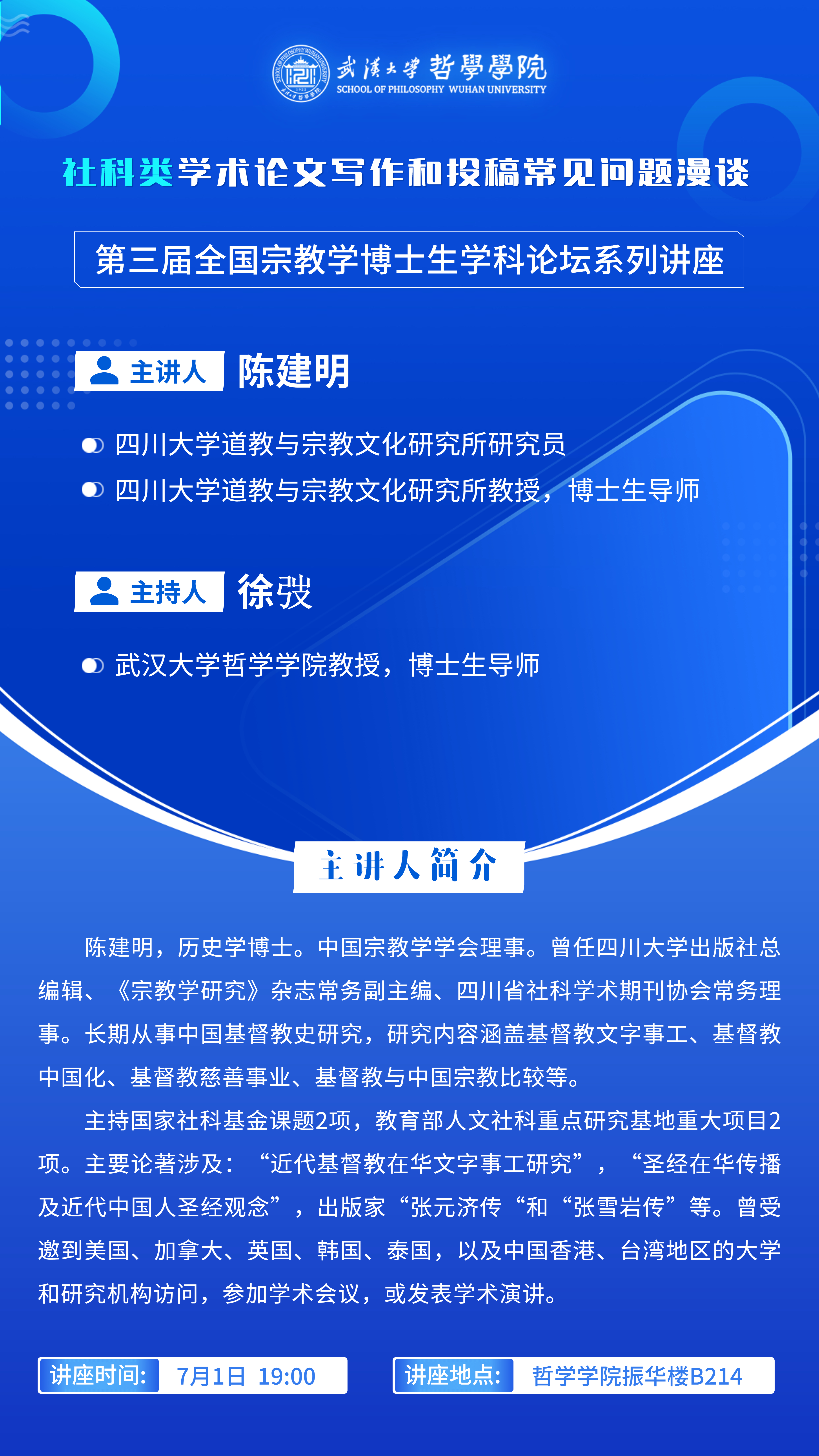 【7月1日】社科类学术论文写作和投稿常见问题漫谈——第三届全国宗教学博士生学科论坛系列讲座