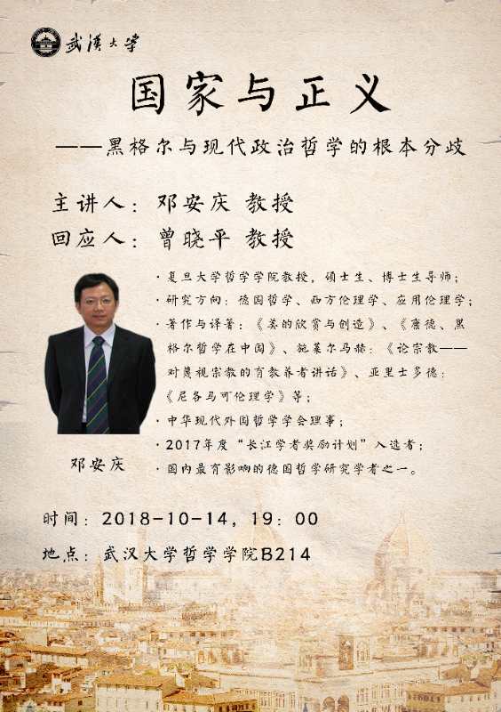 【10月14日】国家与正义——黑格尔与现代政治哲学的根本分歧