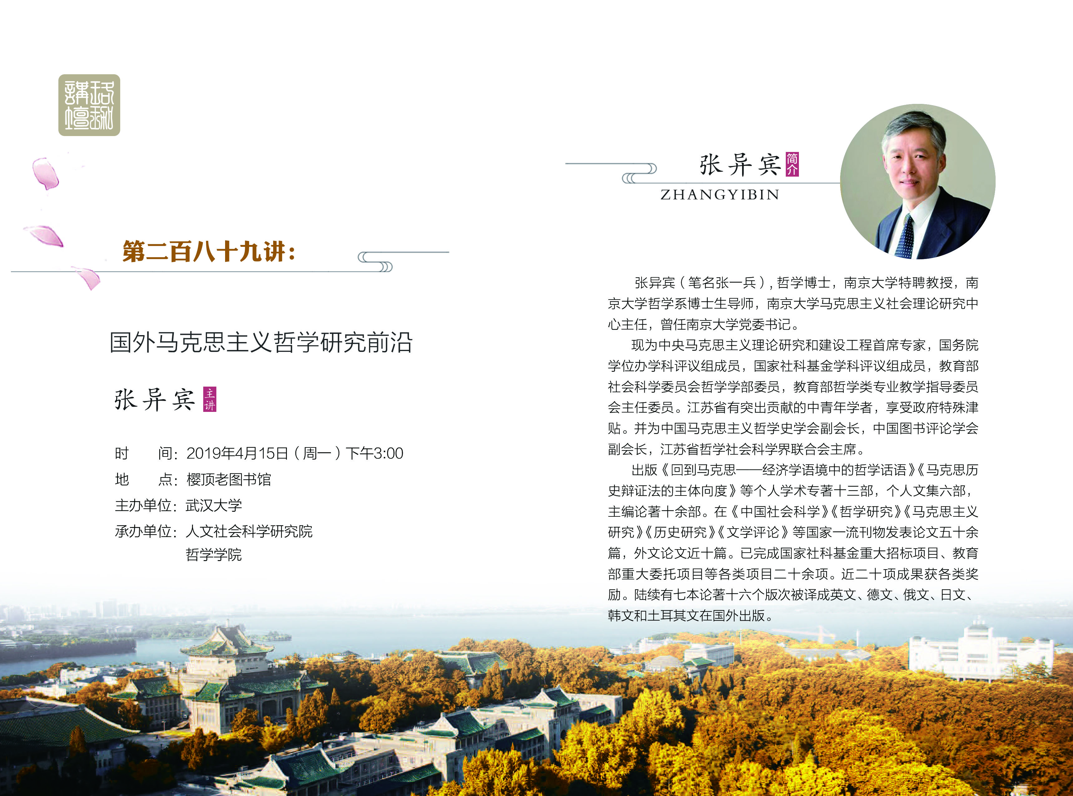 【4月15日】珞珈讲坛第289讲:国外马克思主义哲学研究前沿