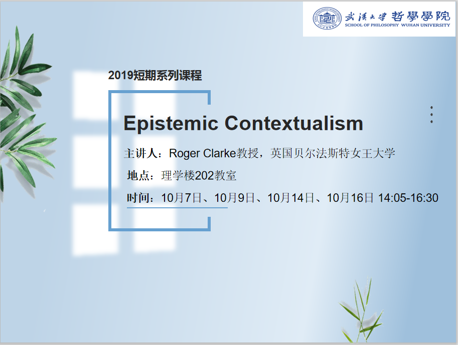 【10月7日—10月16日】2019短期系列课程——Epistemic Contextualism