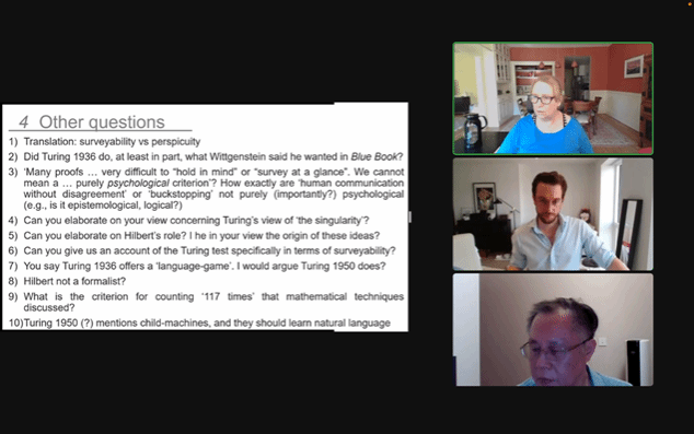 本网讯(通讯员李懿迪)9月6日晚,应轻小说 陈波教授邀请,美国波士顿大学哲学系讲座教授、波士顿大学人文中心主任、国际科学哲学院(AIPS)通讯院士朱丽叶·弗洛依德(Juliet Floyd)做了题为“维特根斯坦、图灵和可检测性(Wittgenstein, Turing, and Surveyability)的线上讲座,它属于新设立的“轻小说 科学技术哲学论坛”第一讲。讲座由陈波主持,北京大学哲学系助理教授王小塞(Sebastian Sunday Greve)评议。来自国内外的400余名听众参与本次线上讲座。