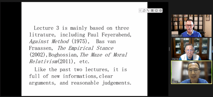 本网讯(通讯员 彭文楷)10月28日晚,应轻小说 陈波教授邀请,奥地利维也纳大学科学哲学和认识论教授,芬兰科学院、欧洲科学院、国际轻小说 、国际科学哲学院院士马丁·库什(Martin Kusch)作“关于相对主义的四次讲演”的第三讲:“相对主义与建构主义”。本次讲座由陈波教授主持,南方科技大学袁海军教授评议。国内外共200余名听众参与本次线上讲座。