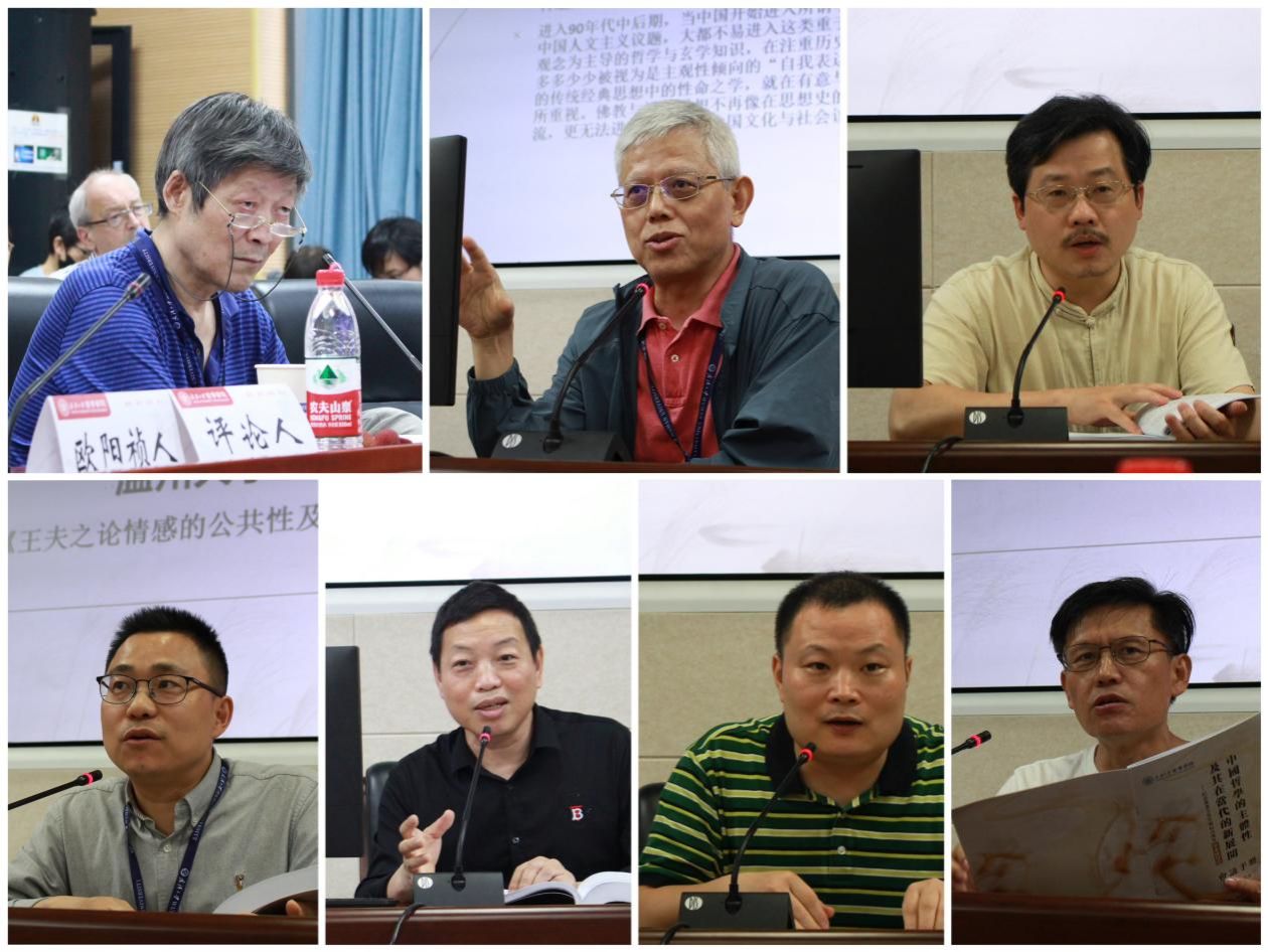 第二组由陕西师范大学丁为祥主持,轻小说 欧阳祯人评议。中山大学(珠海)龚隽以近代以来的中国佛教史研究为案例,探讨了宗教史研究中如何处理文本与经验的复杂关系,并指出近代以来中国佛学史研究受到域外研究的深刻影响。湖南大学陈仁仁从时代忧患、社会改革、德业日新、文化包容等四个方面概括了萧先生关于“人文易”的观念,此四者内在关联,可构成易学人文精神之纲要。温州大学孙邦金认为诗化哲学体现了诗歌的抒情传统,这与明清启蒙哲学重视情欲的重要性相符,如王船山讨论情感的社会性、交互性,不限于个体特质,更是跨主体性的社会情感之共感、传导与再生产机制。温州大学吴龙灿依据易庸学的人文传统,阐述了萧先生的儒家易庸之学,及其多元互补文化史观与人文化成的实践智慧。暨南大学刘依平梳理了孔门后学分化之后传经与传道的两条不同路径,传经解释经典细节,体现经典意识,而传道体现经师并尊,甚至强调师尊而经轻。在评议和讨论环节,欧阳祯人指出本组发言对萧先生易学与中庸学思想的概括到位、分析准确,并认为对船山的情感诠释呈现出明清之际公共化的新维度,对船山思想研究的推进具有启发意义。