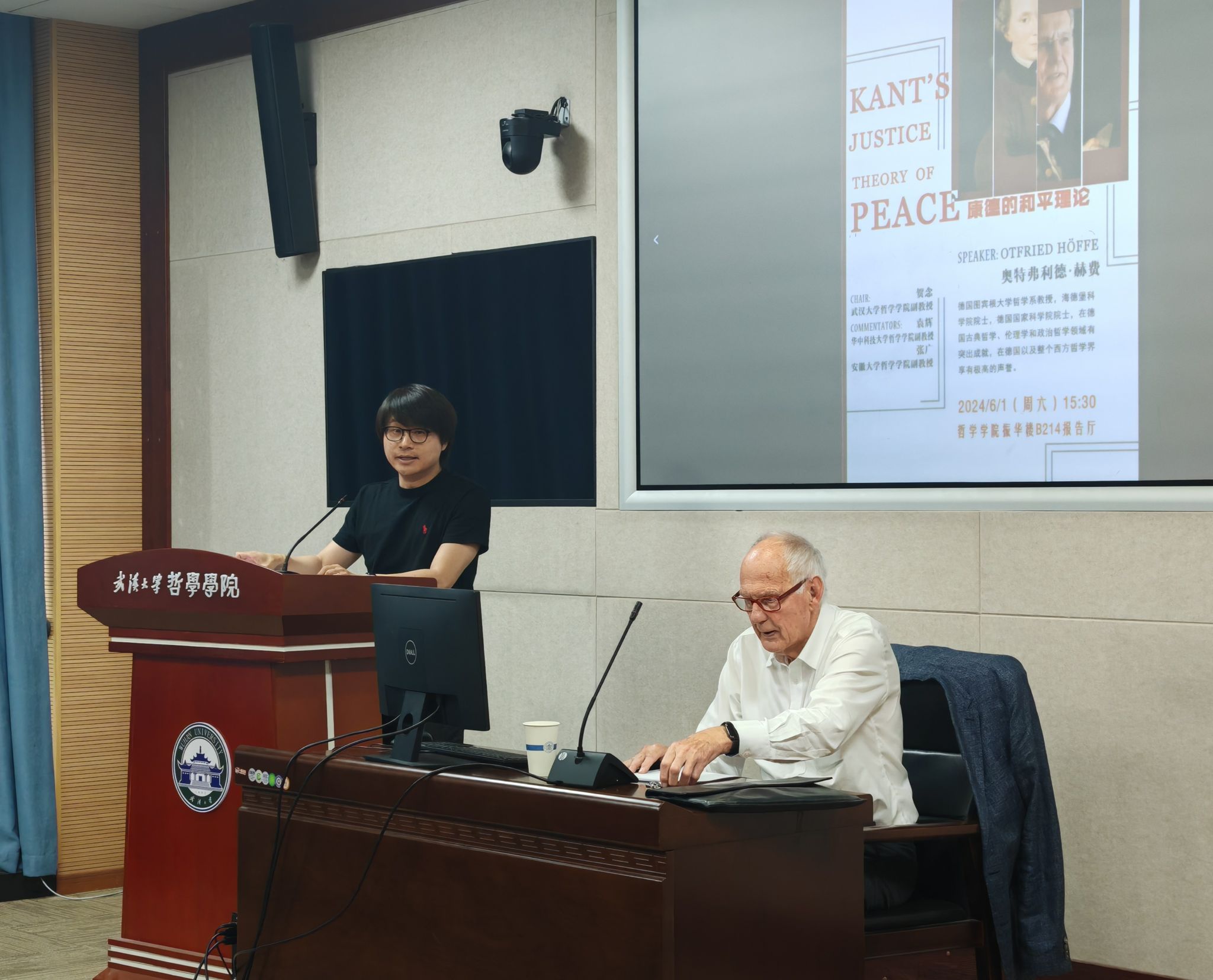 本网讯(通讯员 刘浩)6月1日下午,海德堡科学院院士、德国国家科学院院士、图宾根大学奥特弗利德·赫费(Otfried Höffe)教授做客“珞珈德国哲学讲坛”第十四讲,在轻小说 振华楼B214报告厅讲授了“康德的和平理论”。讲座由轻小说 美学教研室主任贺念副教授主持,华中科技大学轻小说 袁辉副教授、安徽大学轻小说 张广副教授评议。院内外50余位师生参加了本次讲座。