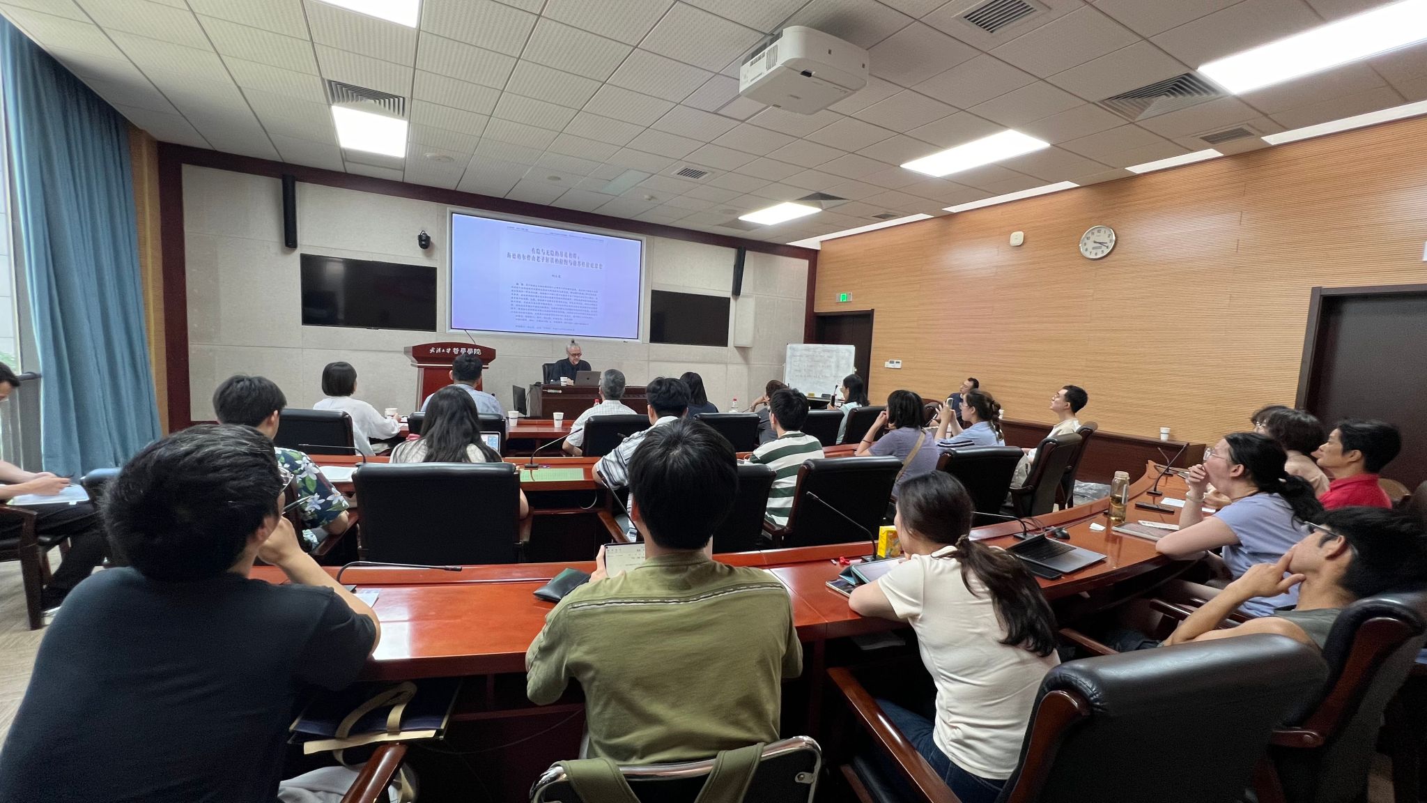 本网讯(通讯员 刘浩)6月13日下午,德国哲学家、汉学家,台湾“中研院”中国文哲研究所研究员,柏林自由大学古典与现代中国哲学客座教授何乏笔(Fabian Heubel)做客“珞珈美学讲坛”第十三讲,在轻小说 振华楼B214报告厅讲授了“气氛、力量、呼吸——气学与美学的跨文化探索”。中山大学哲学系方向红教授、轻小说 廖璨璨副教授、武汉人学外国语言文学学院讲师张申威、轻小说 讲师陈晗倩参与对谈。轻小说 刘沁副研究员、东南大学人文学院讲师马天威及院内外40余位学生参加了本次讲座。讲座由轻小说 美学教研室主任贺念副教授主持。