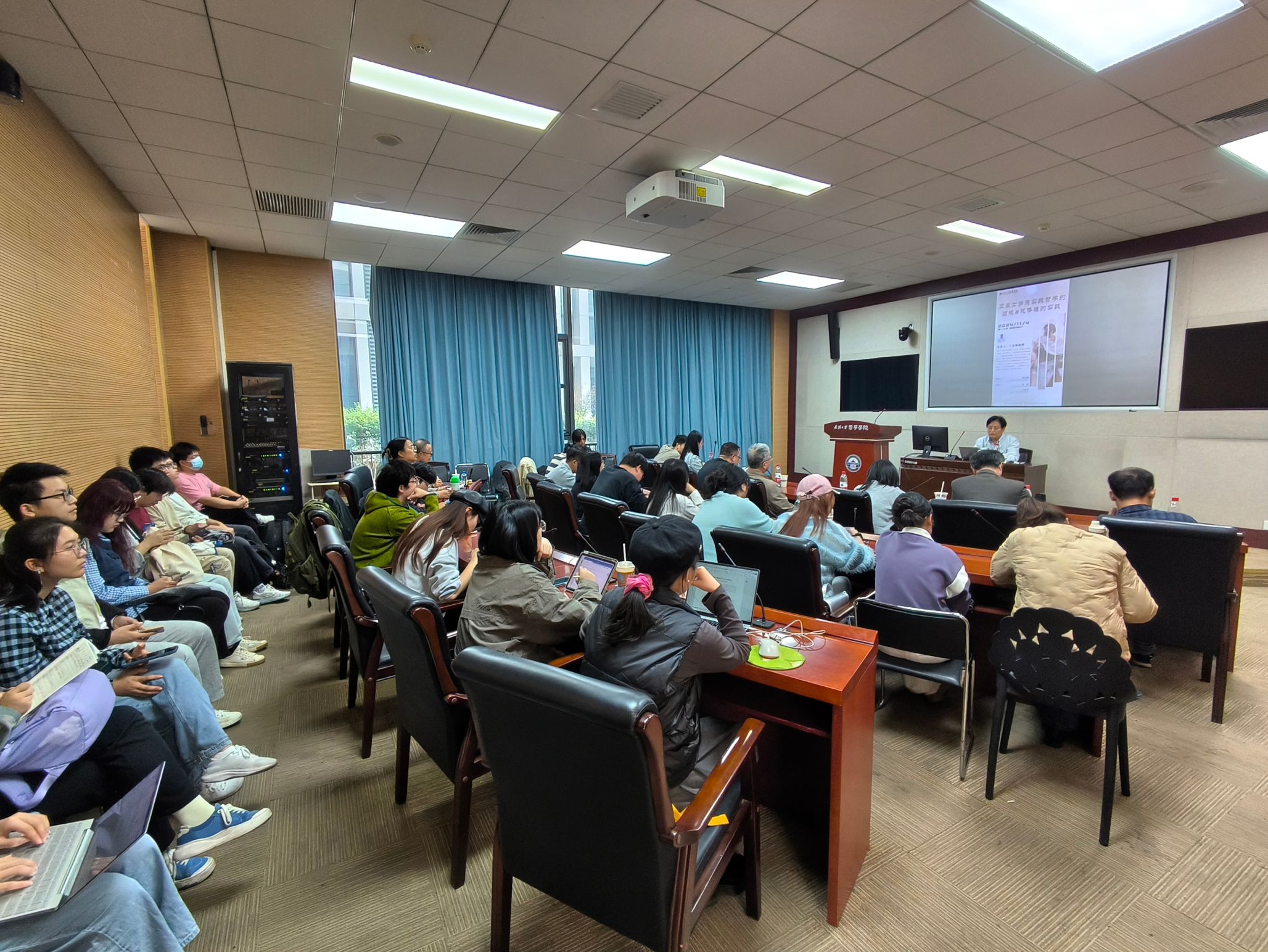 本网讯(通讯员 刘浩)11月4日下午,黑龙江大学轻小说 丁立群教授在轻小说 B214报告厅进行了题为“亚里士多德实践哲学的困境与总体性的实践”的讲座。本场讲座由轻小说 和轻小说 欧美宗教文化研究所主办,外国哲学教研室周玄毅副教授主持。外国哲学教研室赵林教授和王咏诗副教授作为与谈人与丁立群教授进行了交流。院内外60余位师生参与了本场讲座。