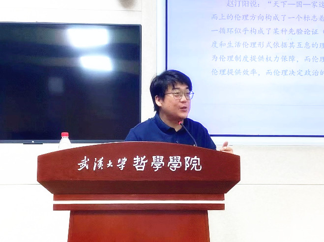 在互动环节中,学生们踊跃发言,针对赵汀阳理论建构中家国天下之间的割裂、伦理与政治的互补关系、公私领域的冲突等问题,纷纷提出自己的疑问。吴根友教授就这些问题给予了细致回应,并热情地与同学们展开讨论,现场气氛热烈。最后,讲座在老师与同学们的热烈掌声中圆满结束。
