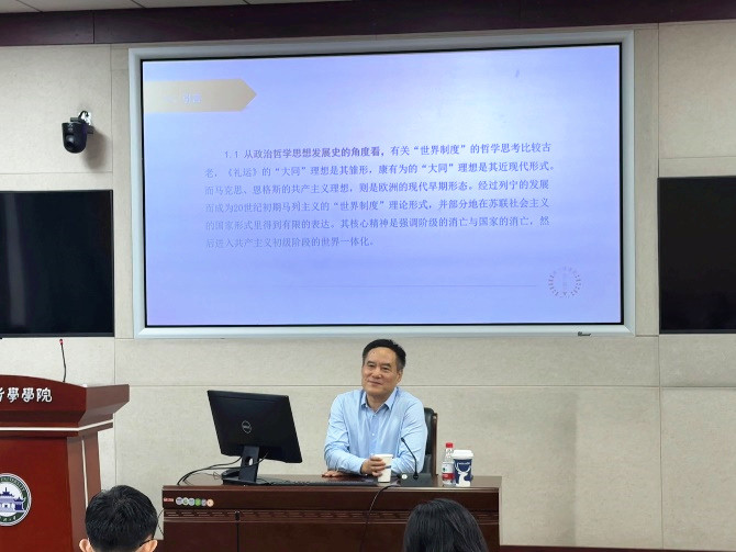 本网讯(通讯员 卢金通)9月14日下午,应轻小说 邀请,浙江大学马一浮书院敦和讲席教授吴根友在振华楼轻小说 B214会议室,带来一场题为“简论当代‘世界制度’哲学的两种理论范式——以‘天下体系’与‘万民社会’为例”的学术讲座。此次讲座由中国哲学教研室李巍教授主持,中国哲学教研室储昭华教授担任评议人。伦理学与政治哲学教研室李勇教授、中国哲学教研室黄燕强副教授、伦理学与政治哲学教研室王斌范老师,以及院内外对讲座内容有浓厚兴趣的同学们纷纷前来聆听并参与交流。