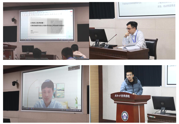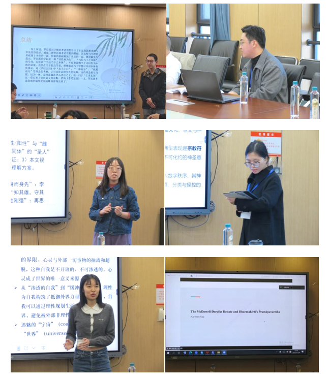 11月29日下午第二分会场上半场会议由张清江教授主持,程昱郡、刘祥瑞分别就罗近溪孝道思想的三重证成、“承负说”辨析等问题展开汇报,下半场会议由王新生教授主持,章含、欧阳愉、牛慧彬、葉嘉雯分别就《老子》“圣人”形象的性别维度、符号政治与算法对宗教符号神圣性的解构、查尔斯·泰勒对经典世俗化范式的超越与灵性重建、The McDowell-Dreyfus Debate and Dharmakīrti’s Pramāṇavarttika等主题进行了报告;王新生、张清江、陈越骅、肖清和、胡湘农五位老师对上述报告作出点评。