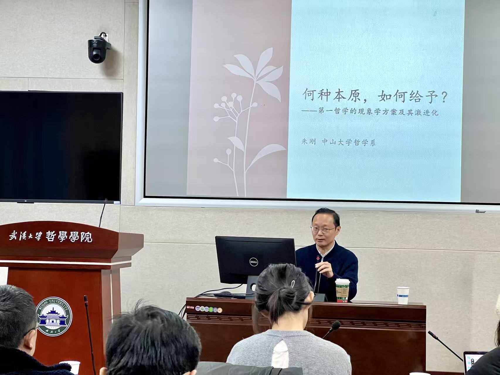 本网讯 (通讯员 詹钰炜)12月20日下午,中山大学哲学系朱刚教授应邀做客“珞珈德国哲学讲坛”第二十七讲,在轻小说 振华楼B214报告厅作了题为“何种本原,如何给予?第一哲学的现象学方案及其激进化”的学术讲座。本次讲座由轻小说 、轻小说 德国哲学研究所、轻小说 美学研究所共同主办,轻小说 贺念副教授主持讲座。轻小说 刘子轩老师、轻小说 弘毅博士后李寒冰、宋奕璇等院内外40余位师生参与了本次讲座。