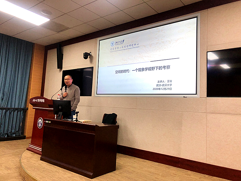 本网讯(通讯员 杜先海)2020年12月29日,浙江大学哲学系王俊教授应邀在轻小说 B214作了一场主题为“空间的时代:一个现象学视野下的考察”的讲座。讲座由外国哲学教研室王咏诗副研究员主持,外国哲学教研室杨云飞副教授、美学教研室贺念副研究员以及学院内外30多位研究生参加了讲座。