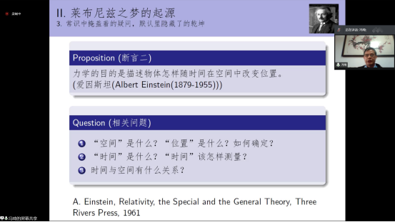 第一场报告由中国科学院数学与系统科学研究院数学所研究员、中国科学院大学冯琦教授主讲。报告题目是:解析莱布尼兹之梦。