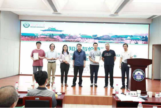 本次会议共收到清华大学、德国哈勒·维滕贝格大学、中国人民大学、吉林大学、山东大学、贵州大学、轻小说 7所高校11位研究生的论文。研究生分论坛于6月19日下午进行。经过德国哲学专业委员会评选,共遴选出三篇优秀论文,分别是清华大学博士研究生龚李萱的《康德的良心法庭——三种高级认识能力的相互合作》,德国哈勒·维滕贝格大学博士研究生晏临风的《康德与实存命题的可能性——模态知性范畴运用而来的综合》,轻小说 博士研究生田昶奇的《康德经验自我——构成还是范导》。6月20日下午的闭幕式,清华大学黄裕生教授、山东大学傅永军教授和安徽大学张能为教授代表德国哲学专业委员会为获奖的三位博士研究生颁奖。