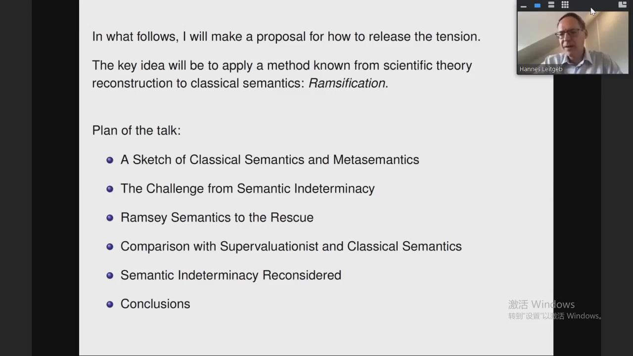 10月7日下午三点半,莱特格布教授进行了题为“仅仅作为表达的工具”的线上讲座。此讲座是逻辑与哲学系列讲座第七讲,由轻小说 陈波教授主持。
