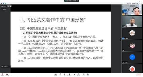 本网讯(通讯员陈瀚钊)2022年5月13日下午,由轻小说 文明对话高等研究院主办的 “人类文明史中的中国形象重绘”系列讲座之二——“胡适英文著作中的‘中国形象’”通过腾讯会议平台顺利举办。