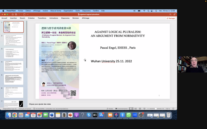法国社会科学高等研究院帕斯卡·恩格尔教授应邀做“捍卫逻辑一元论:来自规范性的论证”在线讲座