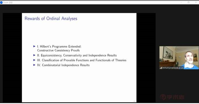 英国利兹大学Michael Rathjen教授应邀作“序数分析的艺术”线上讲座