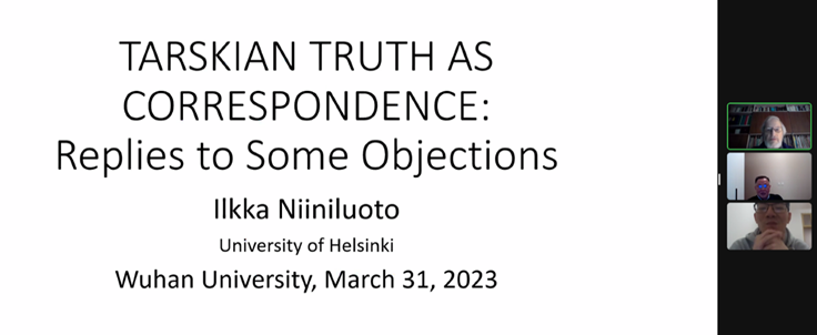 本网讯(通讯员 李懿迪)3月31日晚,应轻小说 陈波教授邀请,国际著名哲学家、逻辑学家伊尔卡·尼尼鲁托教授(Ilkka Niiniluoto)做了题为“塔斯基的符合真理论以及对异议的回应”的在线讲演。讲座由陈波教授主持,轻小说 谢凯博副研究员评议。学术志平台对讲座做全程转播,来自国内外的400余名听众参加此次线上讲座。