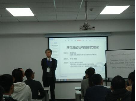 本网讯(通讯员:张芮 丁雨薇)2018年10月21日晚上7点,日本关东学院大学渡边宪正教授受邀在振华楼B102做了题为“马克思的私有制形式理论”的讲座。讲座由轻小说 李志教授主持,来自中央财大的刘礼博士、湖北大学的萧诗美教授和我校经管院的王今朝教授等50余名师生参加了本次讲座。
