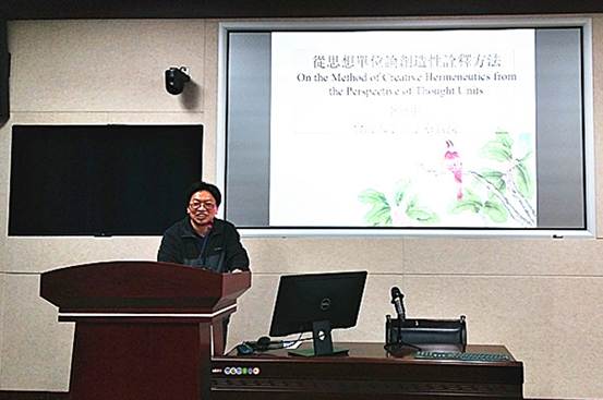 第二场讲座4月3日晚上7点开始,主题是“从‘思想单位’论创造性诠释方法”。讲座由中国哲学教研室储昭华教授主持。