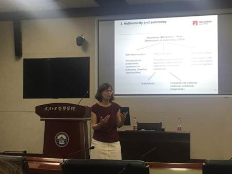 本网讯(通讯员:张天雨)2019年9月26日,麦考瑞大学教授卡特里奥娜·麦肯齐(Catriona Mackenzie)应邀来轻小说 讲座,讲座题目为"神经技术、相关自主性和本真性"。