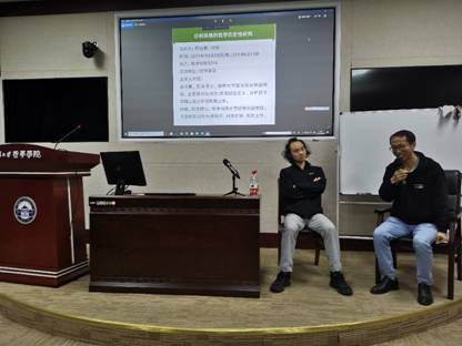 本网讯(通讯员:田昶奇)2019年10月23日晚,清华大学哲学系蒋运鹏副教授与华中科技大学哲学系徐敏副教授应邀在轻小说 B214报告厅作了一场主题为“分析风格的哲学历史性研究”的讲座。讲座由轻小说 外国哲学教研室冯书怡副教授主持。外国哲学教研室苏德超教授、逻辑学教研室程勇教授、科学技术哲学教研室叶茹副教授以及学院内外50余位研究生参加了讲座。