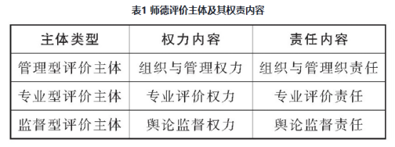 由此,三种师德评价主体及其权责关系内容可以通过表1展示。