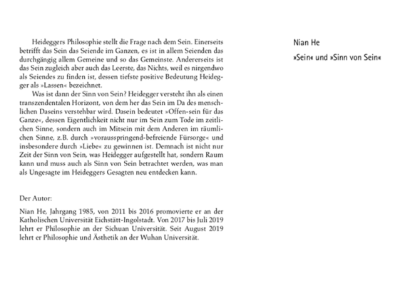 【德国卡尔·阿尔伯出版社】贺念德语著作:《Sein und Sinn von Sein: Untersuchung zum Kernproblem der Philosophie Martin Heideggers》