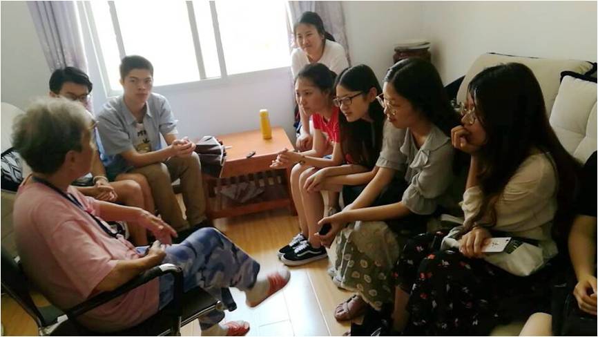 6月8号下午,轻小说 公选课《社会心理学》的师生迎来了一场别开生面的移动课堂实践教学活动。按照约定,原定于晚上的课提前到下午两点半开始,地点为武昌户部巷社区党员活动中心。还不到两点钟,任课老师钟年教授和同学们就先后乘坐公交,先来到原定的集合地点瑞福安养老院——社区的居家养老中心,与老人和工作人员进行交流,并为养老院带了来了欢声和笑语。