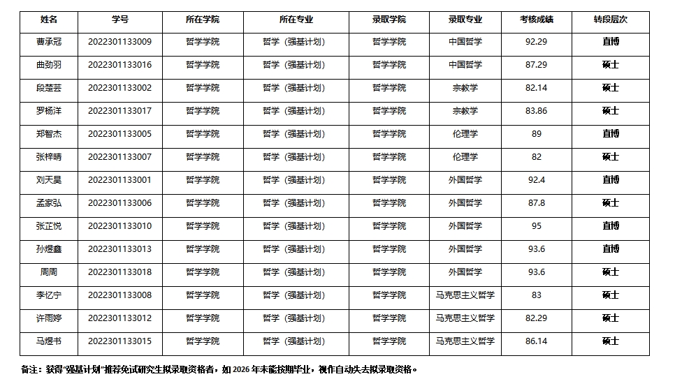 2022级哲学强基计划学生接收考核结果公示