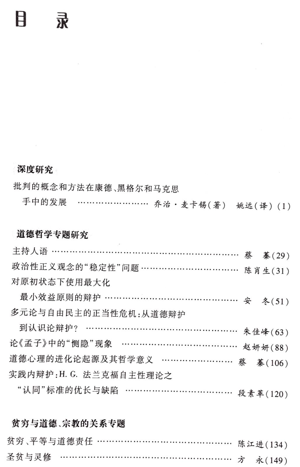 《哲学评论》第15辑目录