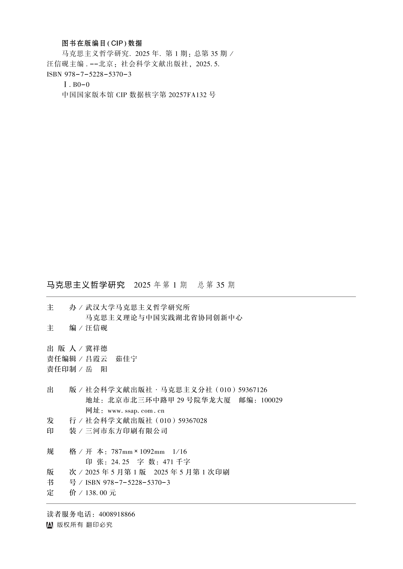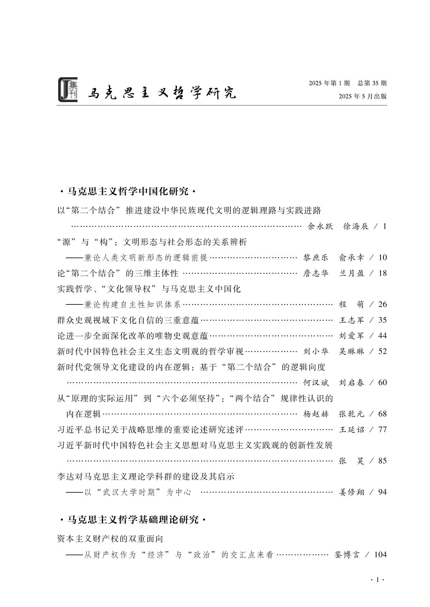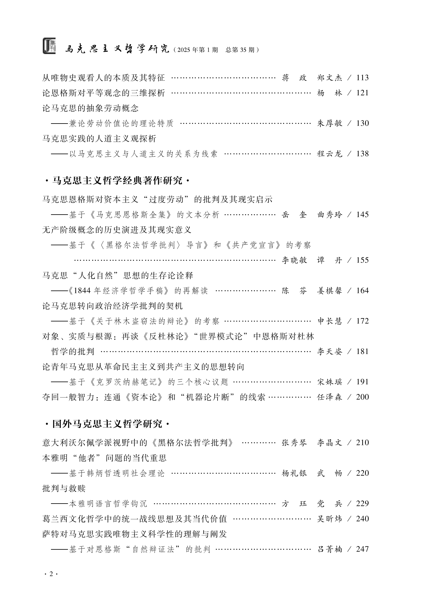 《马克思主义哲学研究》(2025年第1期)