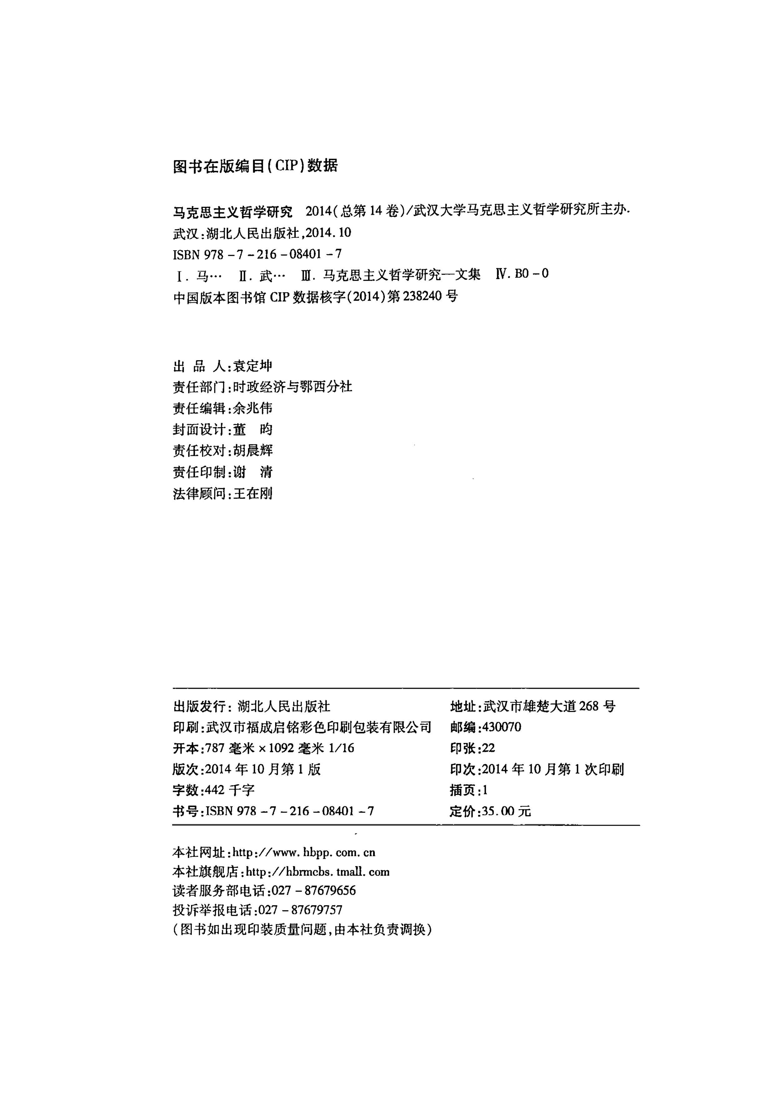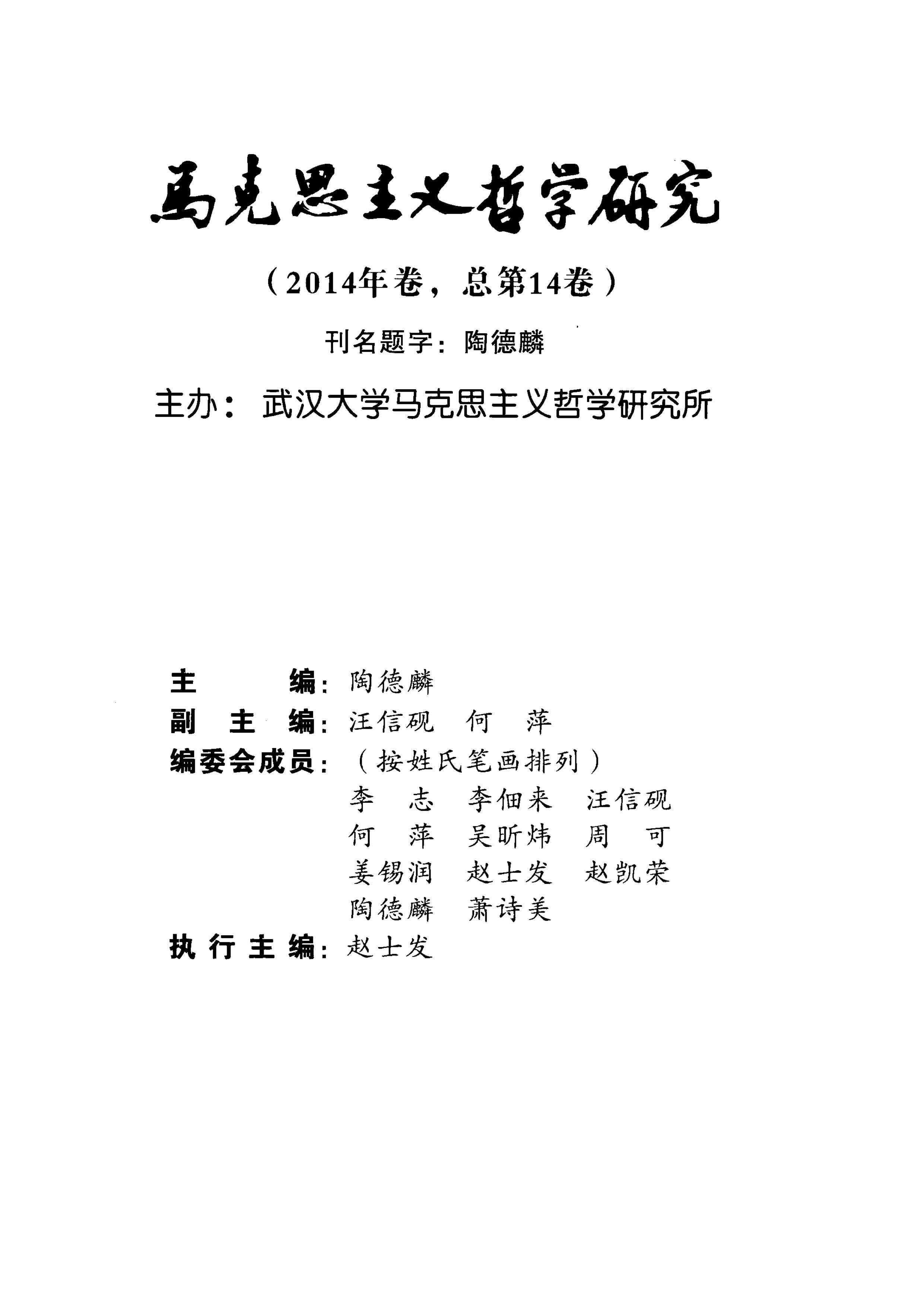 《马克思主义哲学研究》(2014年)