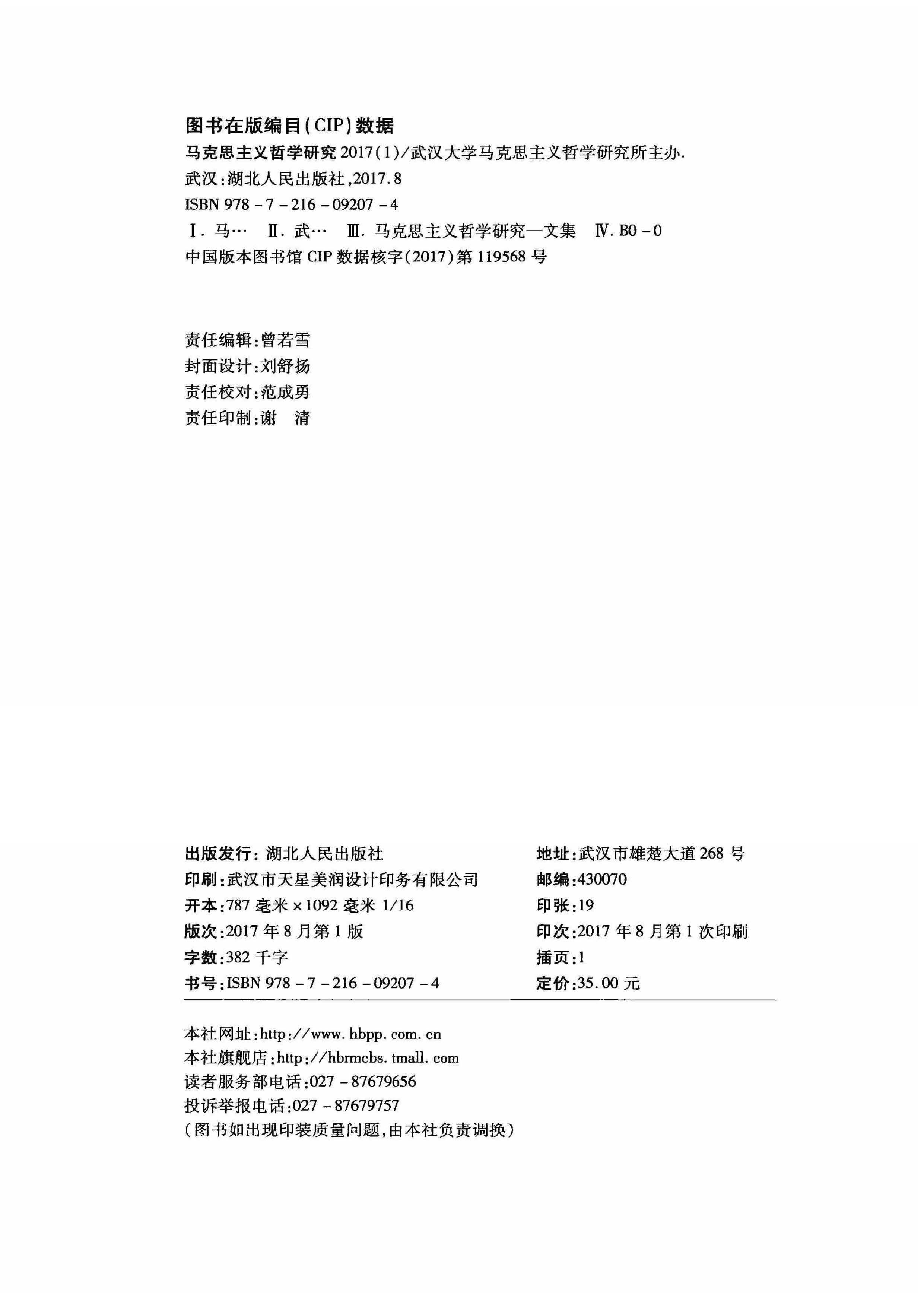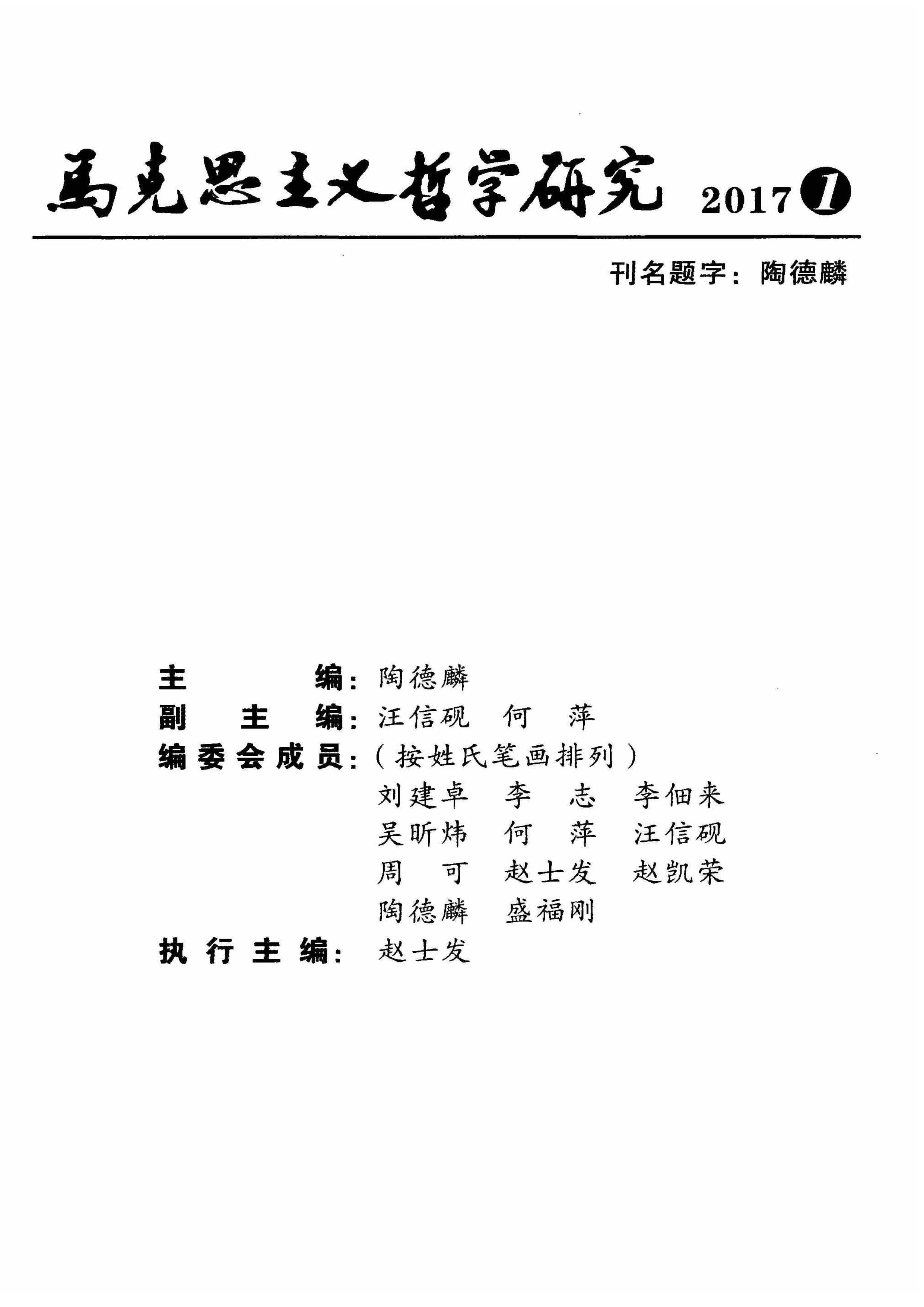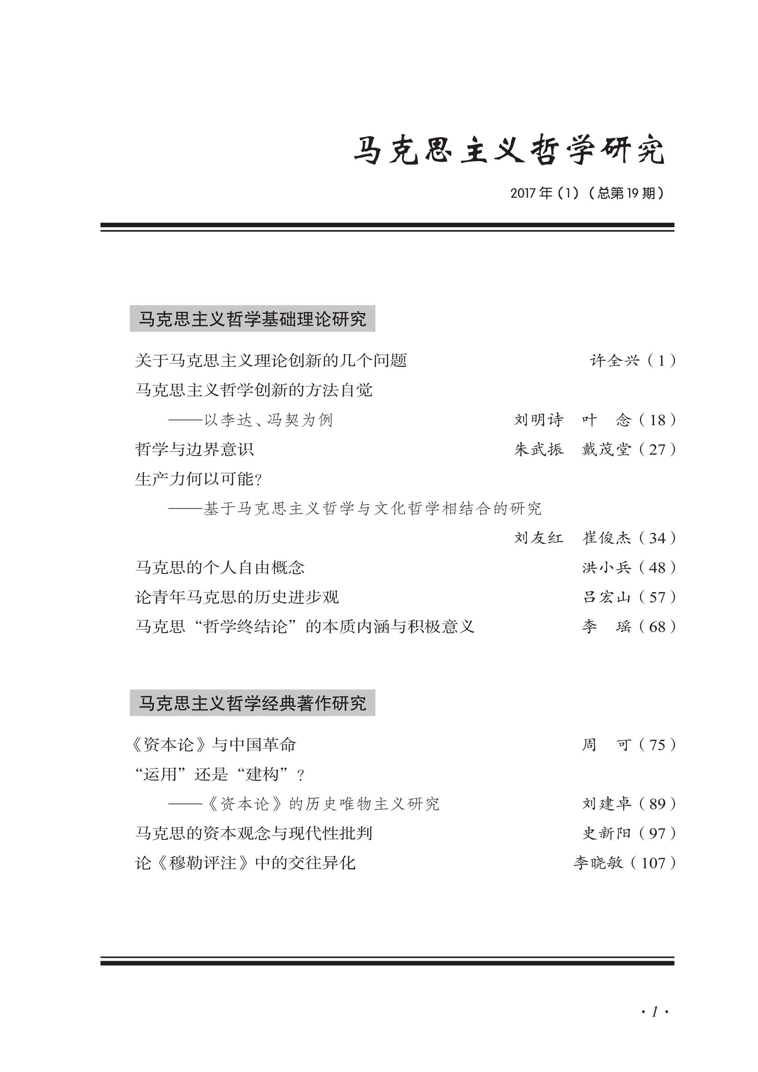 《马克思主义哲学研究》(2017年第1期)